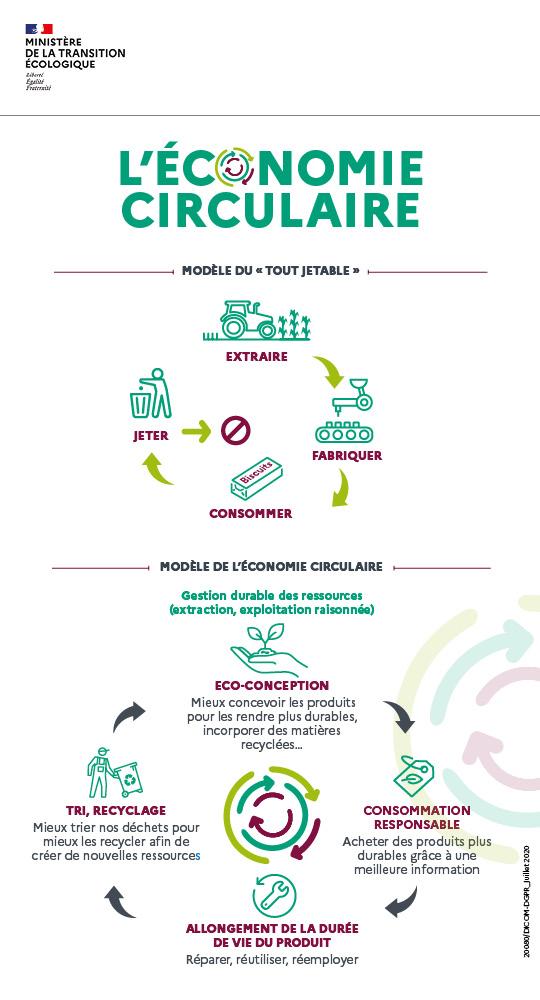 L’économie circulaire est un modèle économique qui se base sur 7 piliers rassemblés autour de la préservation des ressources, de l’environnement, de la santé, du développement économique des territoires et de la lutte contre le gaspillage.